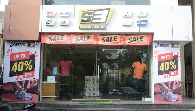 "S3 ACTIVE WEAR AND FITNESS HUB- All brands under one roof - ASICS, NIKE, REEBOK, ADIDAS, TYKA, DIDA, SHIV NARESH, AEROFIT."